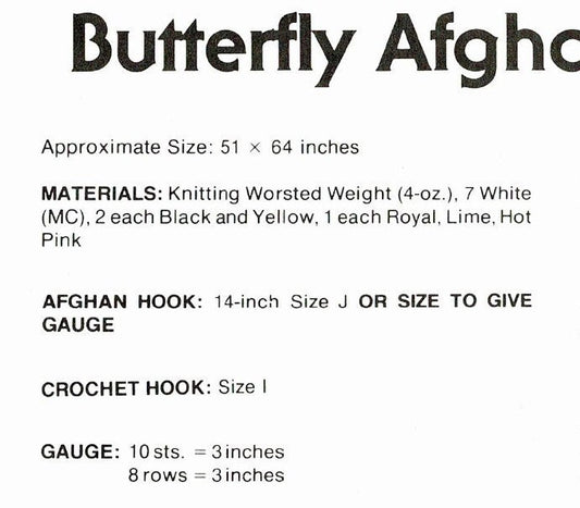 Vintage Crochet Pattern Butterfly Afghan PDF Instant Digital Download Tunisian Stitch 51x64 10 Ply