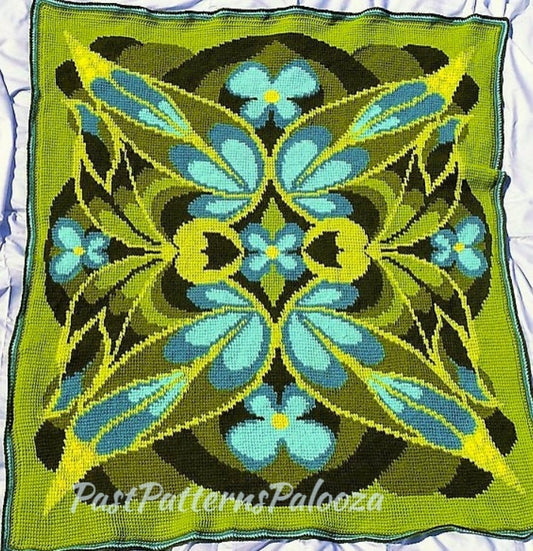 Vintage Crochet Pattern Butterfly Wing Afghan PDF Instant Digital Download Boho Mod Flower Design Tunisian Stitch 49x63 10 Ply