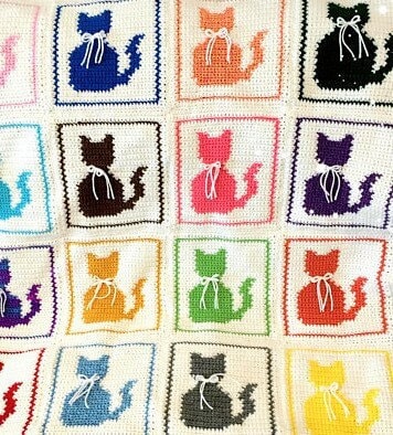 Vintage Crochet Pattern Cat Afghan PDF Instant Digital Download Ombre Kitty Cat Bow Ties Blanket Pillow 42x49 DK 4 Ply