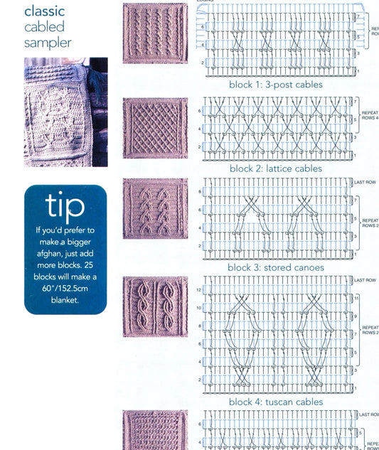 Vintage Crochet Pattern Classic Cabled Squares Sampler Afghan Blocks Medley Blanket PDF Instant Digital Download Aran 10 Ply