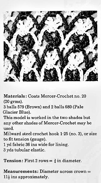 Vintage Crochet Pattern Classic Beret Hat PDF Instant Digital Download Chocolate & Blue Tam Beret Mercerized Cotton Thread