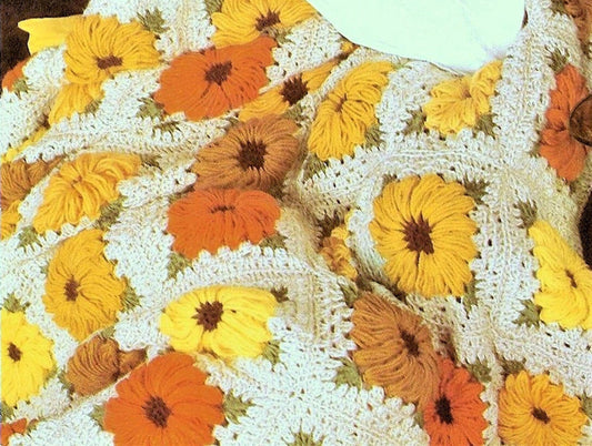Vintage Crochet Pattern Chrysanthemum Daisies Granny Square Afghan PDF Instant Digital Download Pretty Flower Field Throw Coverlet 10 Ply
