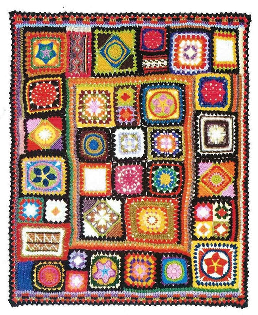 Vintage Crochet Pattern Colorful Retro Abstract Granny Squares Sampler Afghan Scrapghan PDF Instant Digital Download Retro Hippie Boho