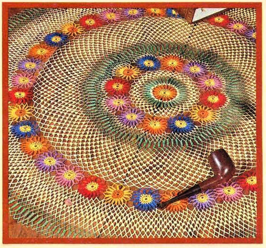 Vintage Crochet Pattern Colorful Rainbow Daisies Doily PDF Instant Digital Download Table Centerpiece Mat Daisy Motifs Cotton Thread