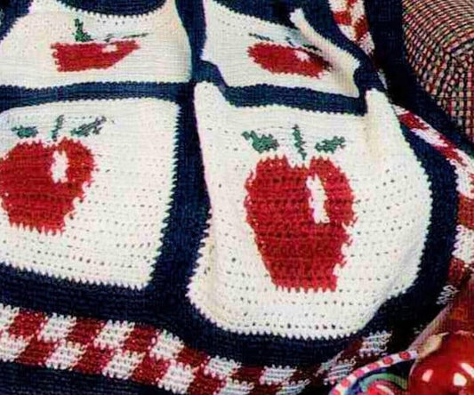 Vintage Crochet Pattern Country Apple Afghan PDF Instant Digital Download Fruit Apples Motif Blanket Throw 52x62 10 Ply