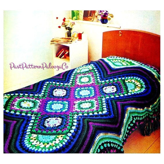 Vintage Crochet Pattern Fascinating Afghan Jewel Tones Granny Squares Bedspread PDF Instant Digital Download Boho Hippie Groovy Grannies