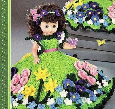 Vintage Crochet Pattern Favorite Things 13" Bed Doll Pillow Doll Music Box Doll Outfit Summer Flowers Dress PDF Instant Digital Download