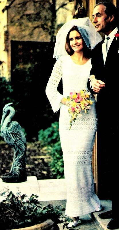 Vintage Crochet Pattern Elegant Wedding Dress Gown Bell Sleeves Pearls Trim PDF Instant Digital Download Heirloom Quality 4 Ply
