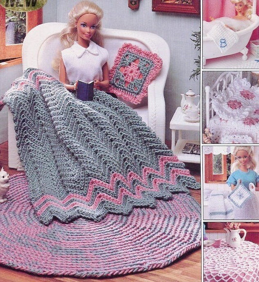 Vintage Crochet Pattern Fashion Doll House Home Decor Afghans Bed & Bath Linens Rugs Tablecloth Dollhouse Sized PDF Instant Digital Download