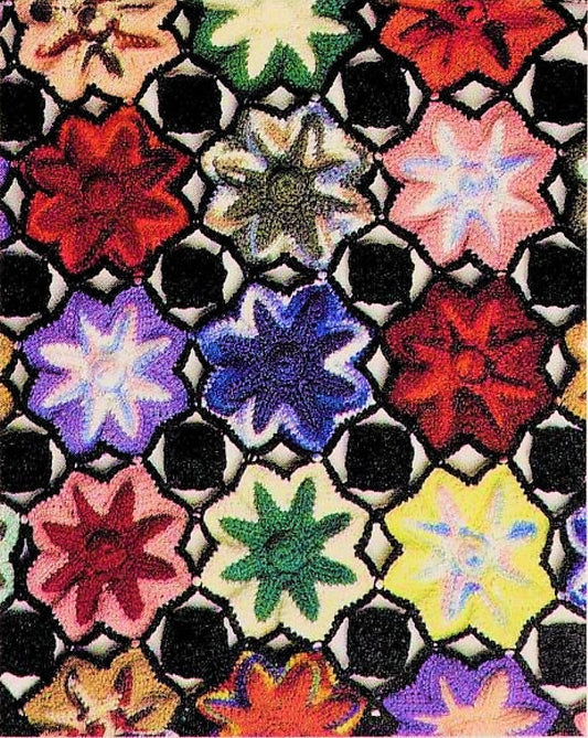 Vintage Crochet Pattern Gothic Flower Bed Afghan PDF Instant Digital Download Pretty Floral Motif Blanket Black Background 63x77 10 Ply