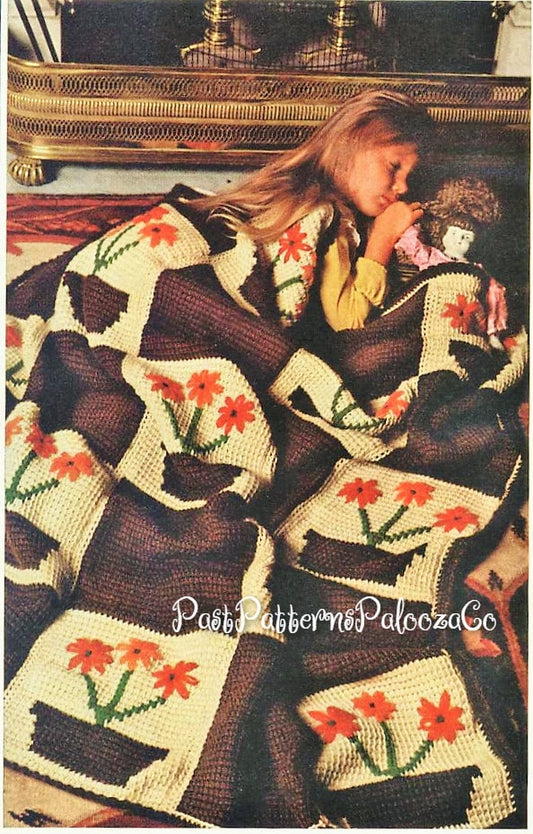 Vintage Crochet Pattern Girls Childs Flowerpot Squares Afghan PDF Instant Digital Download Retro Flower Pot Twin Bed Blanket Tunisian 10 Ply