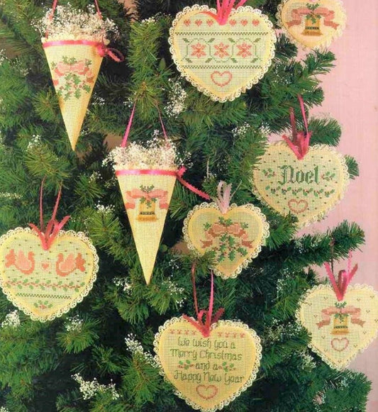 Vintage Cross Stitch Pattern Beaded Victorian Christmas Tree Ornaments PDF Instant Digital Download Perforated Paper Craft Hearts Cornucopia