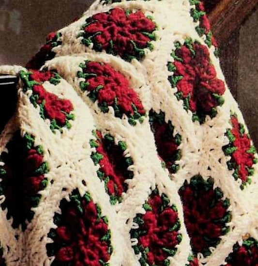 Vintage Crochet Pattern Christmas Poinsettia Flower Afghan Pattern Granny Squares PDF Instant Digital Download Holiday Throw Blanket 4 Ply