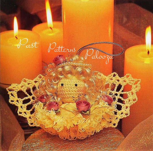 Vintage Crochet Pattern 6-9" Victorian Lace Christmas Angel Figures Centerpieces Ecru & Gold Brocade Thread PDF Instant Digital Download