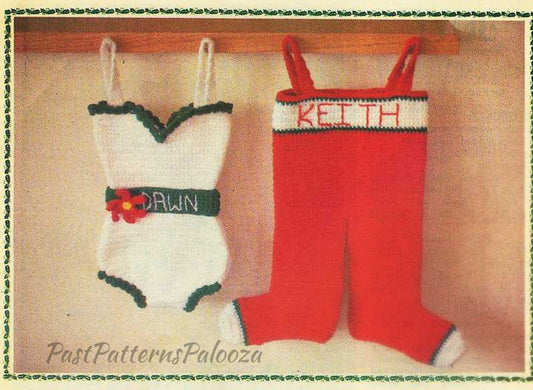 Vintage Crochet Pattern Funny His & Hers Christmas Stockings Girdle Corset Long Johns Underwear Novelty Socks PDF Instant Digital Download
