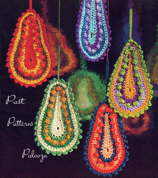 Vintage Crochet Pattern 5" Paisley Pear Drop Christmas Ornaments Jewel Tones PDF Instant Digital Download Retro Groovy Mod Tree Trim