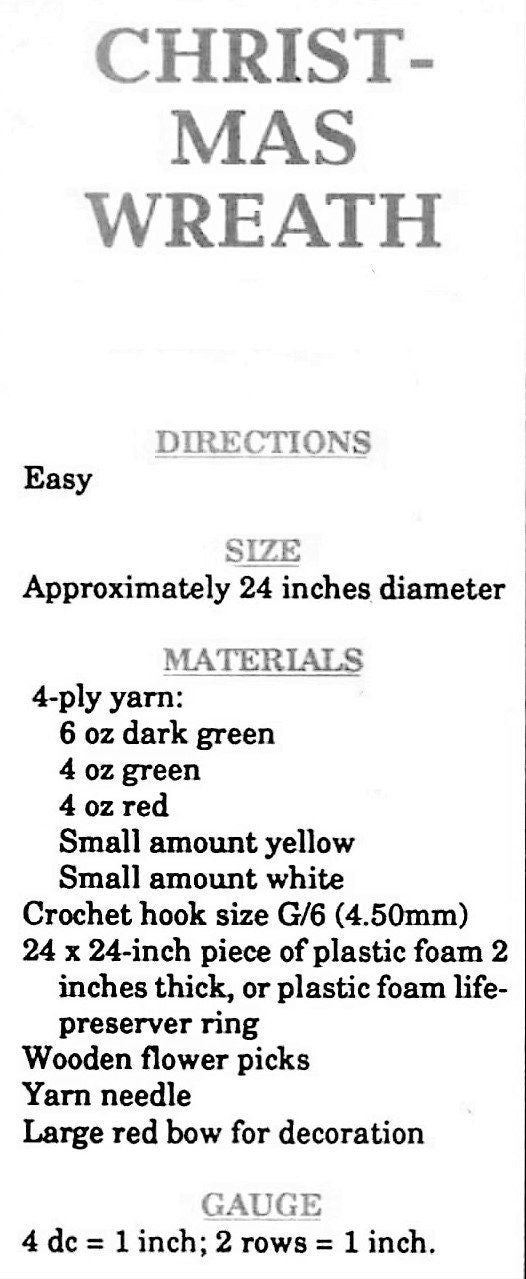 Vintage Crochet Pattern 24" Pretty Poinsettia Holly Berries Christmas Wreath PDF Instant Digital Download Holiday Door Wall Hanging 4 Ply