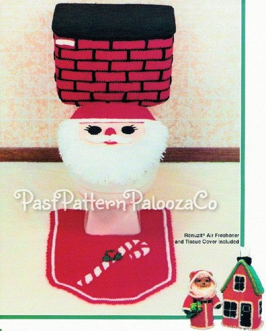 Vintage Crochet Pattern Christmas Bathroom Santa Claus Set Toilet Lid Chimney Tank Bear Tissue Cover PDF Instant Digital Download