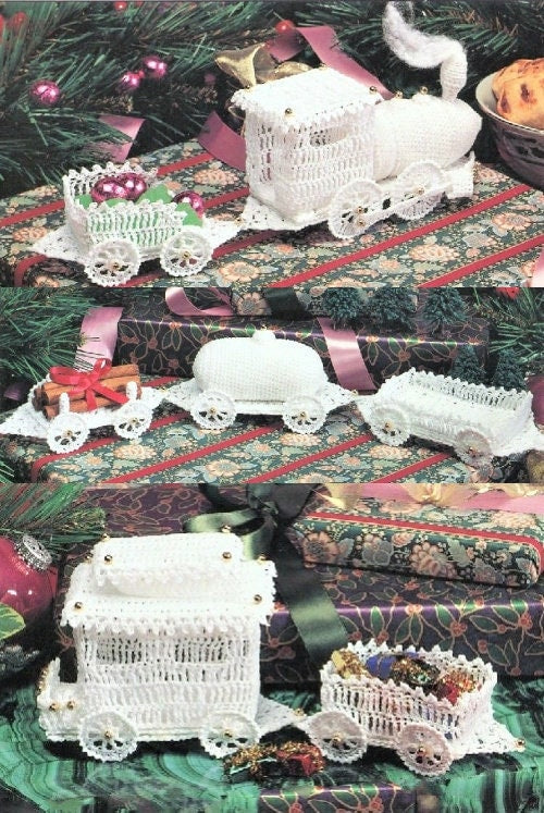 Vintage Crochet Pattern Christmas Train Holiday Express PDF Instant Digital Download Candy Treat Holder Xmas Display Decor Cotton Thread