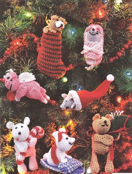 Vintage Crochet Pattern Christmas Animals Toys or Ornaments PDF Instant Digital Download 13 Hanging Amigurumi Tree Trim Plush Soft Toys