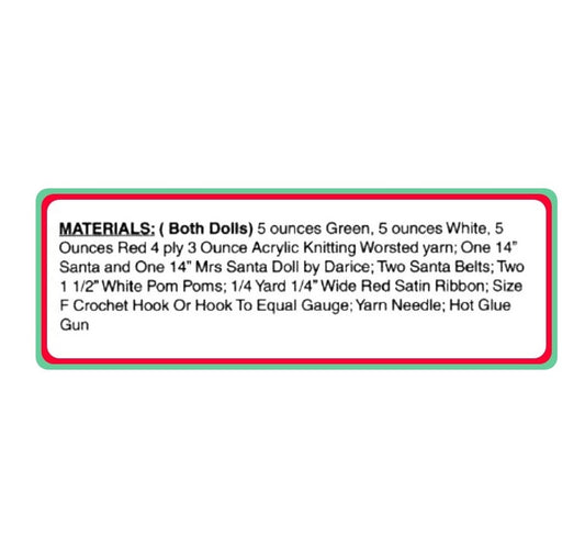 Vintage Crochet Pattern 14" Mr and Mrs Santa Claus Christmas Xmas Dolls Peppermint Candy Cane Outfits PDF Instant Digital Download 10 Ply
