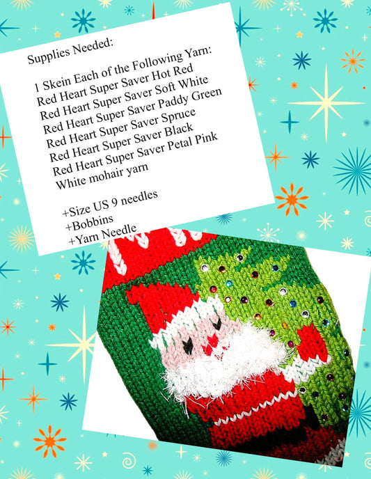 Vintage 20" Santa Face Christmas Stocking Knitting Pattern PDF Instant Digital Download Nostalgic Smiling Angora Beard Retro Sock