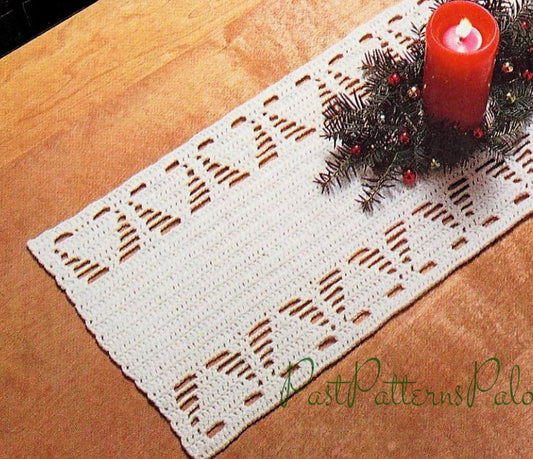 Vintage Crochet Pattern Christmas Tree Table Runner Centerpiece PDF Instant Digital Download Primitive Pines 12x36 5 Ply