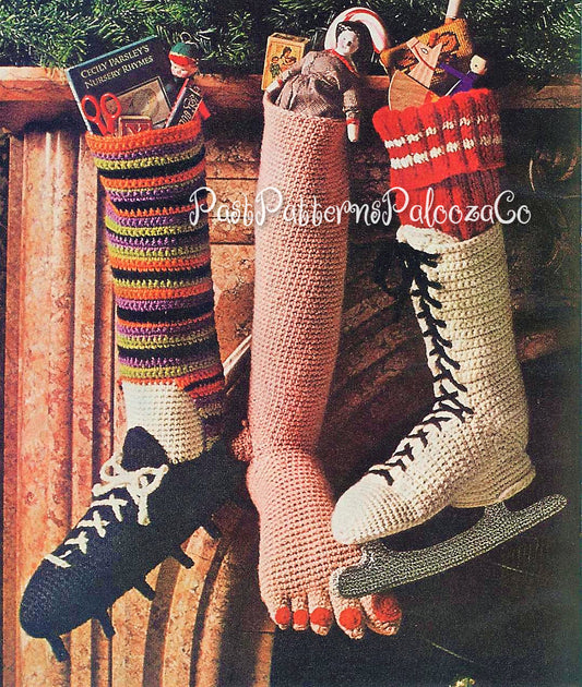 Vintage Crochet Pattern 16" Fun Novelty Christmas Stockings PDF Instant Digital Download Bare Foot Mary Janes Hi Top Sneaker Soccer Skate
