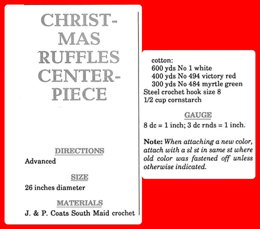 Vintage Crochet Pattern 26" Elegant Christmas Ruffles Doily Centerpiece Large Fancy Table Mat PDF Instant Digital Download Cotton ThreadRegular price $3.00Regular priceUnit price / per$0.00Sale price $3.00