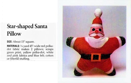 Vintage Sewing Pattern 15" Star Shaped Santa Claus Pillow Doll PDF Instant Digital Download Plush Retro Christmas Cushion