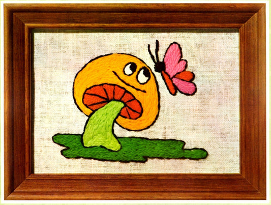 Vintage Printable Crewel Embroidery Pattern Cute Mushroom Butterfly Kitsch Design PDF Instant Digital Download