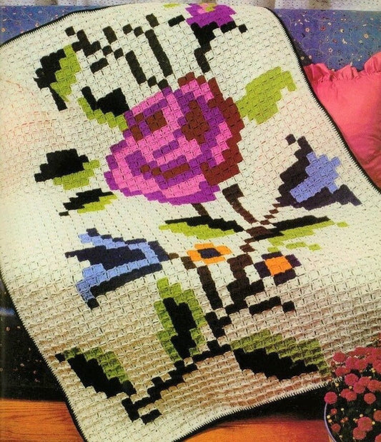 Vintage Crochet Pattern Mosaic Rose Picture Afghan Small Tiny Granny Squares PDF Instant Digital Download Large Flower Throw Blanket 5 Ply