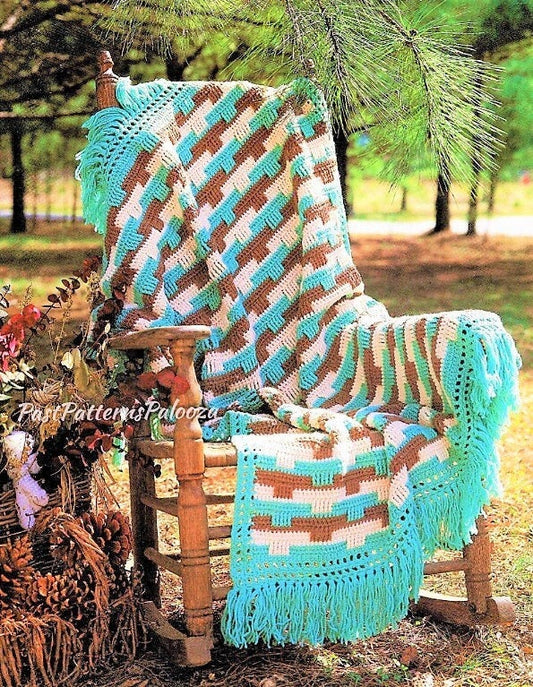 Vintage Crochet Pattern Pretty Basketweave Stitch Afghan PDF Instant Digital Download Interlocking Shapes Design Throw Blanket 46x55 10 Ply
