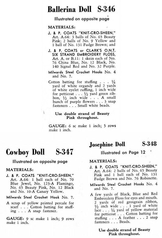 Vintage Crochet Pattern Pretty Ballerina Doll Cowboy Doll Soft Amigurumi Toys PDF Instant Digital Download Cotton Thread