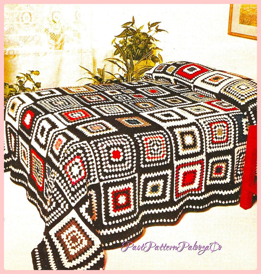 Vintage Crochet Pattern Retro Granny Square Afghan Dream of a Bedspread PDF Instant Digital Download Big and Little Grannies Groovy Blanket