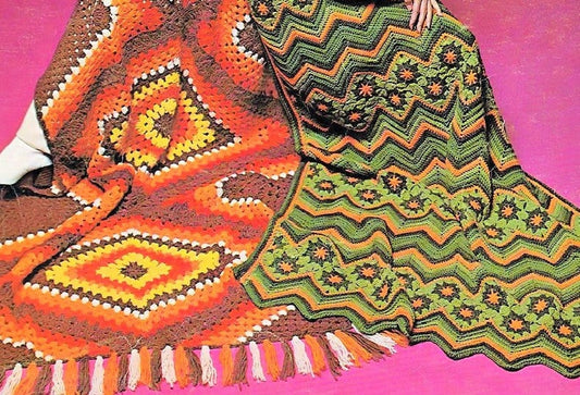 Vintage Crochet Pattern Retro Granny Square Afghans Large Diamond & ZigZag Ripple PDF Instant Digital Download Aran 10 Ply