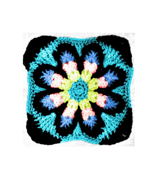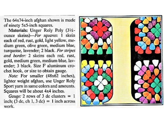 Vintage Crochet Pattern Retro Granny Square Stained Glass Flowers Afghan PDF Instant Digital Download Groovy '70s Throw Blanket DK