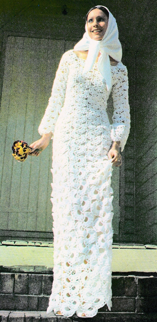 Vintage Crochet Pattern Retro Lacy Wedding Dress Wavy Shells PDF Instant Digital Download Heirloom Mod Boho Chic Maxi Gown 3 Ply