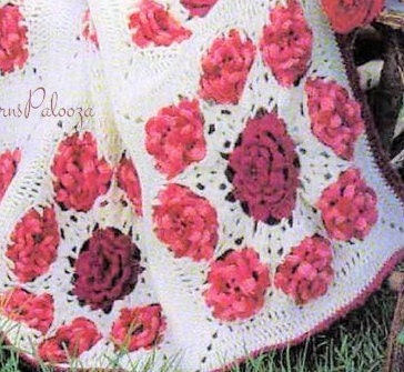 Vintage Crochet Pattern Ring Around A Rose Afghan PDF Instant Digital Download Romantic Pop Out Cabbage Roses Flowers Lacy Blanket 10 Ply