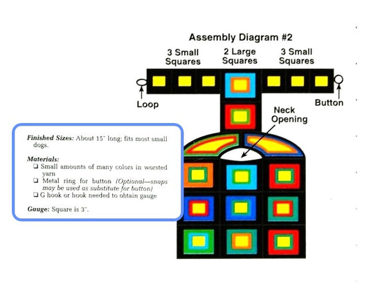 Vintage Crochet Pattern Small Breed Dog Coat Retro Groovy Granny Square Belted Puppy Sweater PDF Instant Download Fits Most Small Dogs