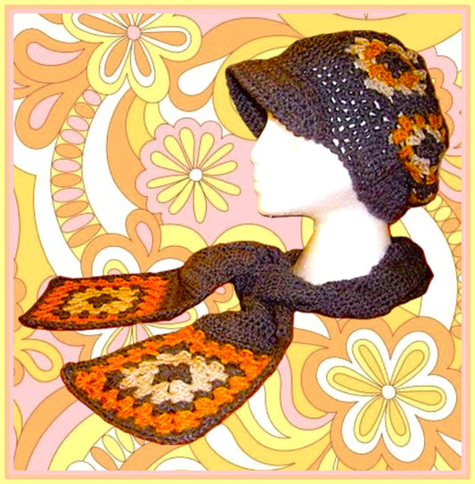 Vintage Crochet Pattern Slouchy Pageboy or Beret Hat and Scarf Set Groovy Granny Squares '70s PDF Instant Digital Download One Size 10 Ply