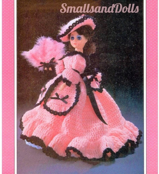 Vintage Crochet Pattern Southern Belle Antebellum Outfit For an 15 inch Doll PDF Instant Digital Download Dress Hat Handbag 80s Bed Doll