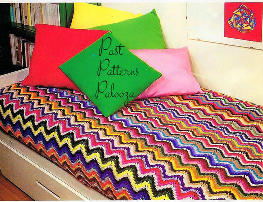 Vintage Crochet Pattern Striped Ripple Chevron Afghan Couch Cover PDF Instant Digital Download Colorful Scrapghan Blanket 4 Ply
