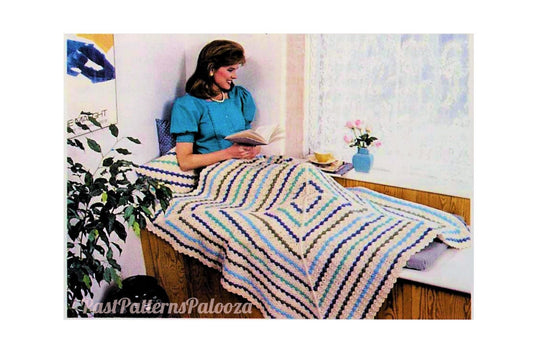 Vintage Crochet Pattern Striped Triangles Square Afghan Blanket and Pillow Set PDF Instant Digital Download 54" 10 Ply