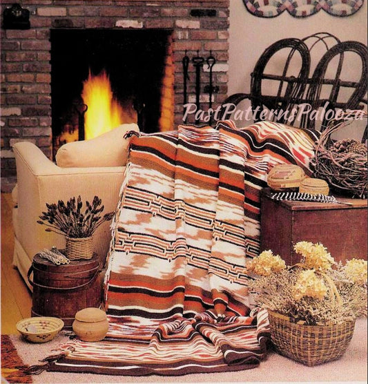 Vintage Crochet Pattern Striped Southwestern Navajo Afghan PDF Instant Digital Download Variegated Indian Throw Blanket 54x72 10 Ply