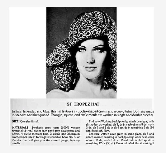 Vintage Crochet Pattern Straw Yarn Pattern Womens Colorful Boho Beach Hats PDF Instant Digital Download Big Brim Floppy Pool Summer Sun Hats