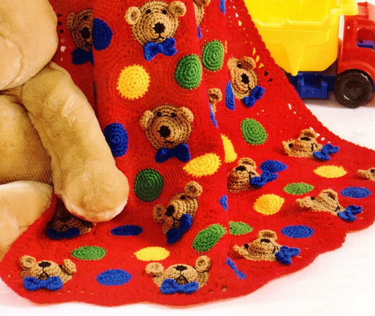 Vintage Crochet Pattern Teddy Bear Faces Motifs Afghan PDF Instant Digital Download Bears & Dots Throw Blanket 43x60 10 Ply