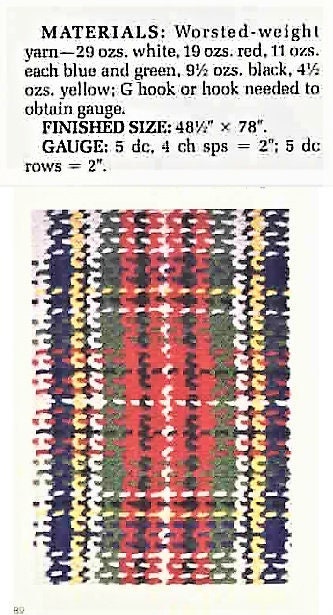 Vintage Crochet Pattern Tartan Plaid Blanket Afghan PDF Instant Digital Download Fringe Throw Lapghan 48x78 10 Ply