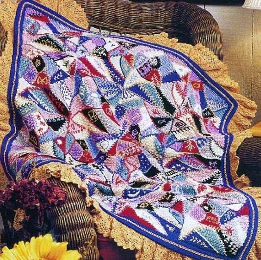 Vintage Crochet Pattern Victorian Crazy Quilt Afghan PDF Instant Digital Download Antique Patchwork Throw Blanket 37x46 5 Ply