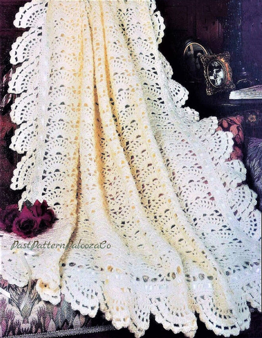 Vintage Crochet Pattern Victorian Heirloom Lace Baby Afghan Blanket PDF Instant Digital Download Pretty Shells Christening Lapghan 5 Ply